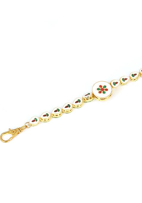 White Gold Tone Kundan Pearl Bracelet - XJB00011