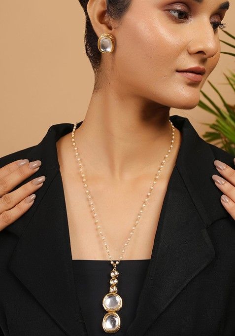 White Gold Tone Kundan Pendant Necklace - XJN00050